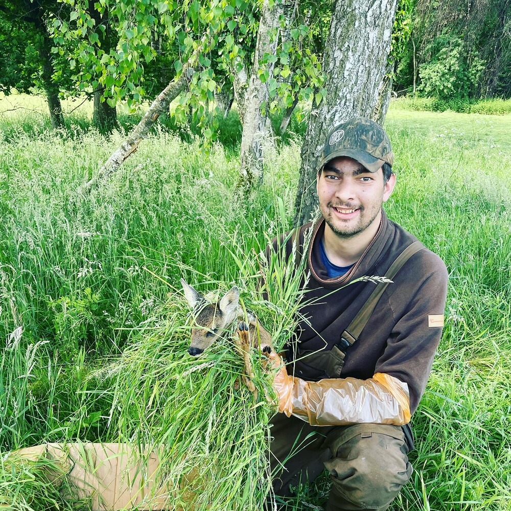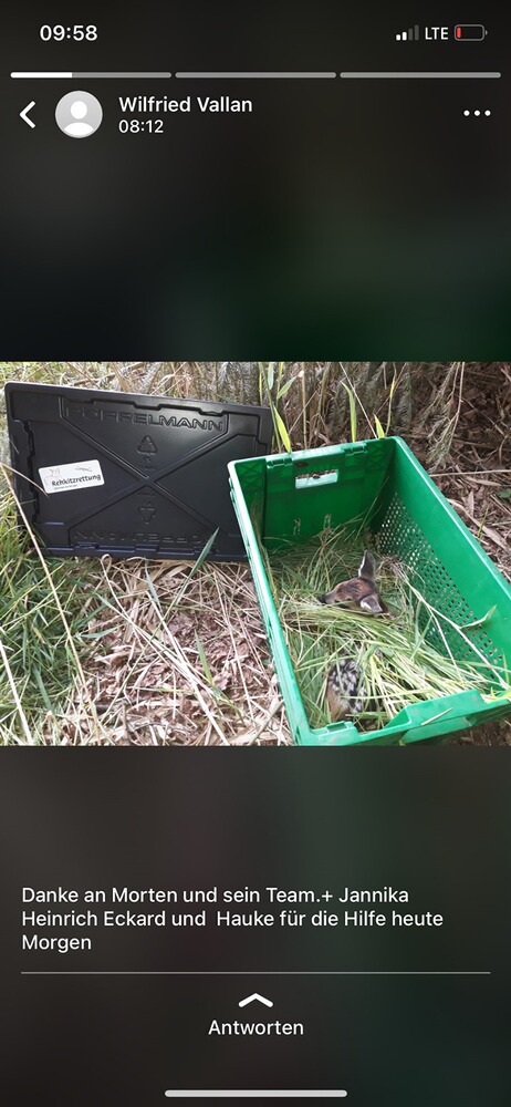 Im Jahr 2020 bin ich auf die Kitzrettung mittels Wärmebilddrohne aufmerksam geworden und wurde quasi in den Bann der Rehkitzretter gezogen ! 2021 Dann die Anschaffung einer eigenen Drohne ! Im ersten Jahr konnten wir dann 127kitze 4 Fasan gelege und auch Junghasen vor dem Mähtod retten !!! Zu unser Strategie ist es eigentlich ganz einfach ! Wir sind meistens in einem Team zwischen 3-5 Leuten unterwegs, fliegen nur in den frühen Morgen Stunden je nach Fläche die abgeflogen werden muss zum Teil schon morgens um 2:00 Start ! Wir nehmen die Kitze in unserem Revier aus der Fläche raus mittels einer Kunststoff Gitterbox . Zur Ausrüstung der Fänger zählt jeweils ein großer Kescher ein Funkgerät und ganz wichtig Einweghandschuhe ! Über Funk koordiniere ich dann dass Team zum Kitz ! Wir fliegen die Flächen Autonom ab in einer Höhe zwischen 20-25m mit einer Geschwindigkeit von ca.12 km/h und markieren erst auf einer Karte die Punkte an denen ein Kitz oder andres Jungtier liegt ! Dann fliegen wir erstmal weiter ! Dieses spart enorm Zeit und die Leute können sich in Ruhe fertig machen! Außerdem spart man Akku ! Sehr wertvoll . Wenn wir dann die Fläche abgeflogen haben starten wir mit einem vollen Akku zur Bergung ! Oft liegen Kitze nicht weit auseinander und so macht es für die Läufer auch mehr sin ! Die Kisten werden mit viel Gras ausgelegt und die Kitze auch mit viel Gras angefasst + Handschuhe Armlänge!! Warum wir sie nicht vor Ort sichern und umzu mähen ? Großer Faktor ist die die Luftwaffe, ich habe vermehrt die Erfahrung gemacht dass wenn die Kitze noch sehr klein sind in einer Insel liegen und dann nicht mehr genug Deckung von oben haben! Wir lassen die Kitze immer umgehend nach dem mähen raus! In benachbarten Flächen oder unter einer Hecke dass klappt einfach am besten! An alle Kitzretter ein kräftiges Horrido! Ganz nach dem Motto „Wir machen nur was falsch, wenn wir nichts machen !!! "