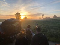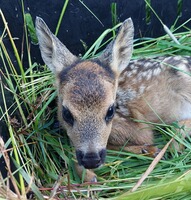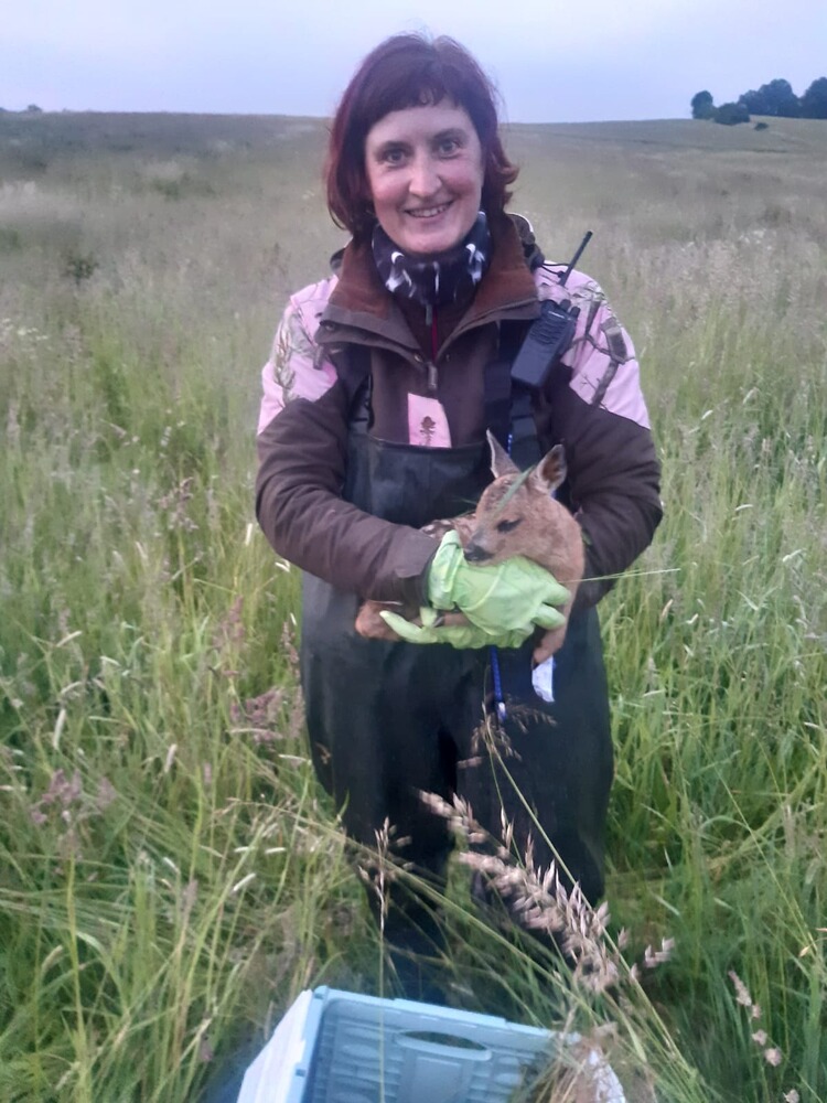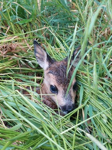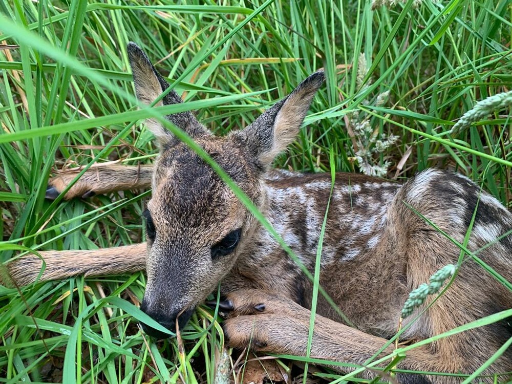 Bereits seit 2020 reifte in uns die Idee, der Natur ein Stück zurückzugeben und Rehkitze vor dem sinnlosen Tod durch die Mahd zu retten. Wir – das sind der technikaffine Jäger und die empathische Tierärztin. Völlig unabhängig von Förderprogrammen, Unterstützung durch Jäger- oder Landwirtschaft haben wir zunächst viel gelesen, gezweifelt, die Idee verworfen und doch immer wieder aufgegriffen, denn das Thema lag uns am Herzen und ließ uns einfach nicht mehr los. Und mal ehrlich: einmal den Kofferraum geöffnet, befindet sich ein Wert von fast 5000€ darin – da braucht es schon ein bisschen Mut und eine Portion Verrücktheit, ein solches Projekt zu starten! Nach dem Vorbild der Schweizer Rehkitzretter haben also wir eine Drohne (DJI Mavic Pro) und separat eine Wärmebildkamera (FLIR Boson 320), sowie gefühlte Millionen weiterer Zubehörteile (u.a. Sendeeinheit und Monitor für das Wärmebild, Stativ, Flugakkus, Zusatzakkus für die Wärmebildkamera, Blei-Akku zum mobilen Aufladen der Flugakkus) gekauft, den Pilotenschein erworben und dann hieß es üben, üben, üben. Wir haben zunächst unsere Pferde, dann unsere Hunde und schließlich in einer Wiese versteckte Wasserflaschen dargestellt, tausendundeine Einstellung geändert und angepasst, bevor es in der Mahd-Saison 2021 zum ersten Mal an eine Wiese und damit an die Kitze ging. Hierbei muss der Wegpunktflug sicher beherrscht und die Schläge nach Möglichkeit vorab kartografisch angelegt werden (wir nutzen hierfür den UAV-Editor). Eine weitere, spannende Frage stellt sich, sobald ein kleiner, schwarzer Punkt zwischen den „fifty shades of grey“ auf dem Display erscheint: Kitz, Hase, Fasan oder doch nur Maulwurfshügel? Und schließlich: Kitz gefunden und wie weiter? Sichern oder raustragen? Wir haben uns für das Raustragen entschieden, wenn eine weitere geeignete Wiese, auf der man das Kitz sicher absetzen kann, zur Verfügung stand. Zur Grundausstattung des Bodenteams gehören Funkgeräte, Wathosen, Handschuhe (Einmal- oder – der Natur zuliebe – z.B. Spülhandschuhe, die ausschließlich hier zum Einsatz kommen und nur innen berührt werden) und gut belüftete, aber sicher verschließbare Kisten (z.B. Tiertransportboxen mit Klappdeckel), denn nicht jedes Kitz weiß so eine Taxifahrt zu schätzen. Schließlich hat unsere Drohne 2021 auf 224 ha mehr als 120 Flugkilometer zurückgelegt und wir konnten 35 Kitzen das Leben retten. Die Saison 2022 ist bereits in vollem Gange und bisher haben wir 39 Kitze und 3 Hasen aus den Wiesen getragen oder getrieben. Bei jedem Einsatz stehen uns engagierte Jäger, Landwirte und auch Tierfreunde helfend zur Seite und die kleinen, gepunkteten und unfassbar gut versteckten Wunder haben noch jeden in ihren Bann gezogen und verzaubert. Eine gute Zusammenarbeit mit den mähenden (Lohn-)Unternehmen ist dabei essentiell, damit die Mahd zeitnah nach dem Flug startet. Unsere Einsätze haben gezeigt, dass auch ein vorabendliches Abgehen der Wiesen mit einem Hund, sowie Stangen mit Flatterbändern und Co. hartgesottene Ricken nicht davon abhalten, ihren Nachwuchs über Nacht wieder in die Wiese zu führen. Natürlich ist auch unser Einsatz nicht fehlerfrei und die Technik durch das Wetter limitiert. Doch so schwer das Aufstehen kurz nach dem Einschlafen fällt: die herrlichen Sonnenaufgänge, die ruhigen Stunden an einem Frühlingsmorgen in der Natur, die vielen Tiere, die man sieht, die freundlichen Menschen, die man kennenlernt, die Geschichten, die man gemeinsam erlebt und natürlich das unbeschreibliche Gefühl, wenn wieder ein Kitz gesichert ist – all das ist jede Mühe wert. Und wer kann von sich denn schon behaupten, bereits vor dem Frühstück sein Schrittziel erreicht, ein straffes Bauch-Beine-Po-Training absolviert und Wassertreten nach Kneipp genossen zu haben???