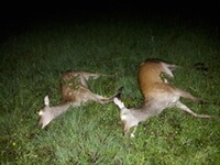 Jeder Jäger kennt das Sprichwort: „nach dem Schuss geht die Arbeit los“. Und so war es auch. Mein Jagdfreund Jürgen kam zu mir und konnte selbst kaum glauben was er da sah. Zum Glück half er mir bei der Bergung und bei der Versorgung der beiden Stücke. Er konnte es sich auch nicht nehmen mich in diesem Moment zum Rotwild-Doublettenjäger zu schlagen :-) Nachts um 1:30 Uhr waren wir dann mit allem fertig und beide Stücke hangen im Kühlschrank. Es war ein unvergesslicher Abendansitz den ich wohl mein Jägerleben lang in Erinnerung halten werde.