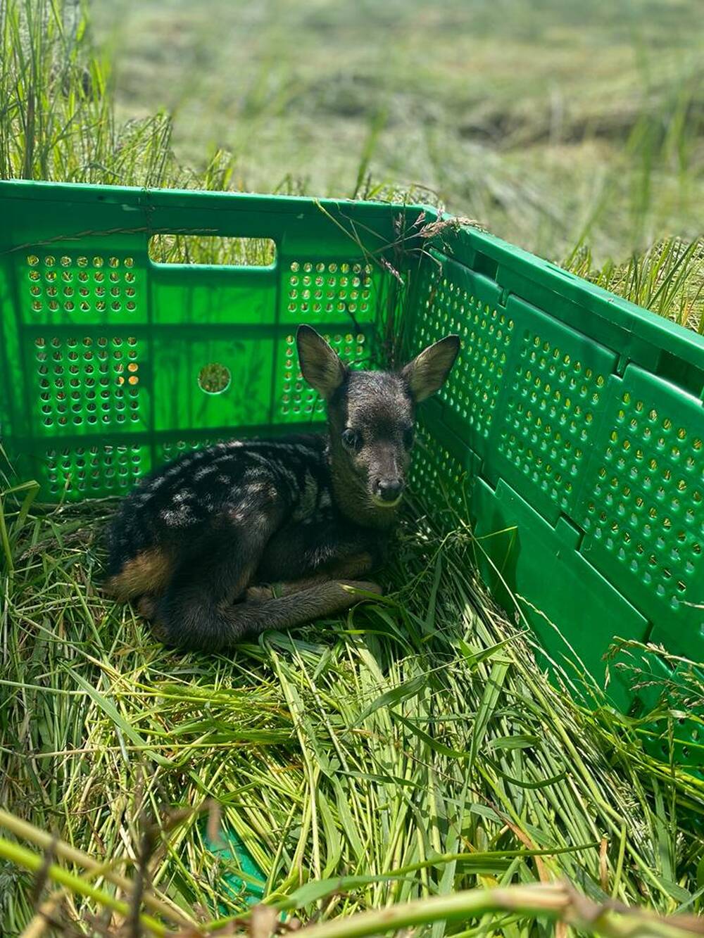 Einer der Kitzretter bestimmt den Standort der Kiste per WhatsApp und sendet ihn in die WhatsApp-Gruppe des Suchteams, damit der „Pate“, der sich in der Regel schnell findet, das Kitz in enger Absprache mit dem Landwirt sofort nach der Mahd wieder in die Freiheit entlassen kann. Die Ricke wartet schon auf diesen Moment, holt das Kitz bald danach ab und bringt es an einen geschützten Ort in Sicherheit.