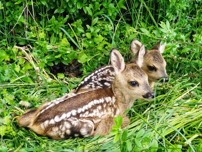 Diese beiden Kitze konnten gerettet werden, sowie an diesem Tag weiter sieben. Dank der Drohnentechnik.