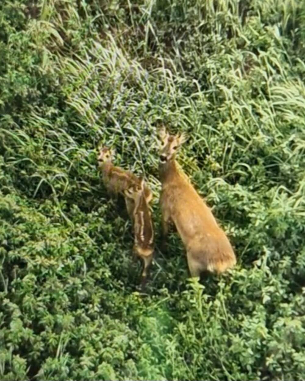 An bisher 14 Tagen konnten wir mehr als 16 Kitze mittels Drohne, welche mit einer Wärmebildkamera ausgestattet ist, sichern bzw. aus der Gefahrenzone leiten. Unsere Suche beginnt meist um 5 Uhr morgens. Wenn die Sonne aufsteigt und die Flächen erwärmt, wird es schwieriger, die raffinierten Verstecke der Kitze, im hohen Gras ausfindig zu machen. Wenn unsere Kamera einen Wärme-Punkt aufspürt und wir nicht mit Gewissheit sagen können, ob es sich um ein Kitz handelt, gehen ein oder zwei Helfer an die Stelle um nachzusehen. Dabei werden schon mal Hosen und Schuhe ziemlich nass.