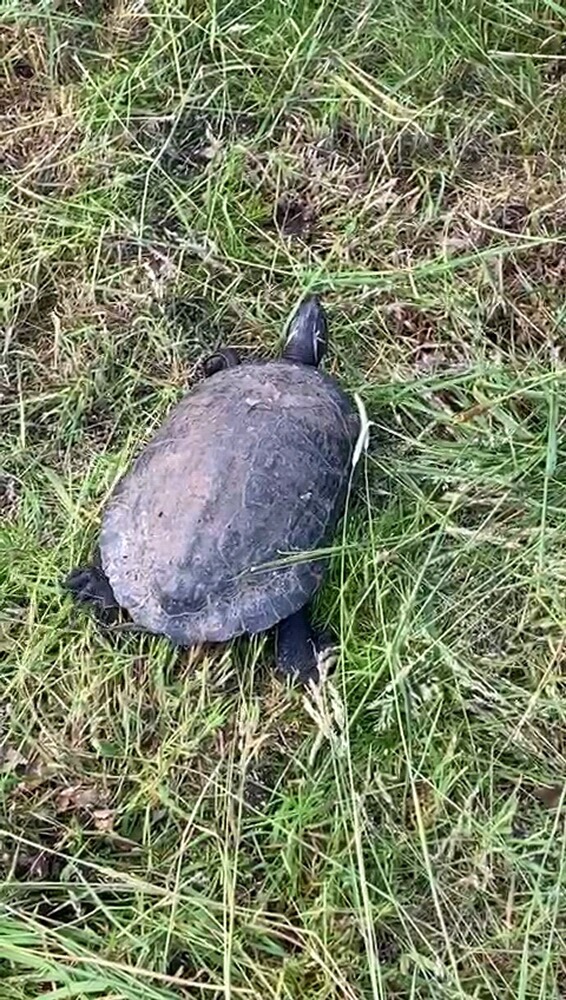 Wir waren dabei mit der Drohne über die Flächen zu fegen, und unten im Gras hat doch tatsächlich eine Schildkröte gelegen.