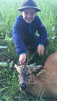 Bei mir, dem Schützen, mach sich Unsicherheit breit, da der Bock in der hoch bewachsenen, unübersichtlichen Fläche trotz Zeichnens sofort verschwunden ist. Doch mein Gefährte ist sich absolut sicher, dass der beschossene Bock liegt. Max hat gesehen, wie der Spießer am nahen kleinen Gebüsch zusammengebrochen ist. So warten wir und die Zeit verrinnt natürlich für uns beide viel zu langsam. Schließlich kann uns nichts mehr aufhalten und wir steigen vom Sitz, um nach dem Bock zu schauen. Doch die Orientierung im nur spärlich geräumten Hang ist nicht einfach unsere erhoffte Beute zu finden. Eigentlich gleicht sich jede Stelle und die Suche wird durch das Gestrüpp enorm erschwert…Schließlich meint Max, wir sollten etwas weiter unten suchen. „Gut!“, denke ich, auch im Bewusstsein, keine bessere Idee zu haben, „suchen wir etwas weiter unten!“ Und tatsächlich: Weniger als 10 Meter weiter unten findet mein Max unseren Bock, unser erstes gemeinsam erlegtes Stück Wild! Was für eine Freude! Wir lassen uns gemeinsam ganz viel Zeit und genießen diesen unvergesslichen gemeinsamen Moment für Vater und Sohn! Zusammen lassen wir diesem für uns so besonderen Bock in aller Ruhe waidmännische Ehren zukommen.