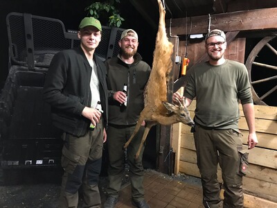 Nach kurzem warten stand er dann auf etwa 130m breit und ich machte mich bereit die Kugel anzutragen, ein kurzes innehalten und Kontrolle aller notwendigen Faktoren-der Abzug bricht und der Bock lag. Als ich am Stück war und sehen konnte das alles geklappt hat viel die Anspannung und ich konnte mich freuen!