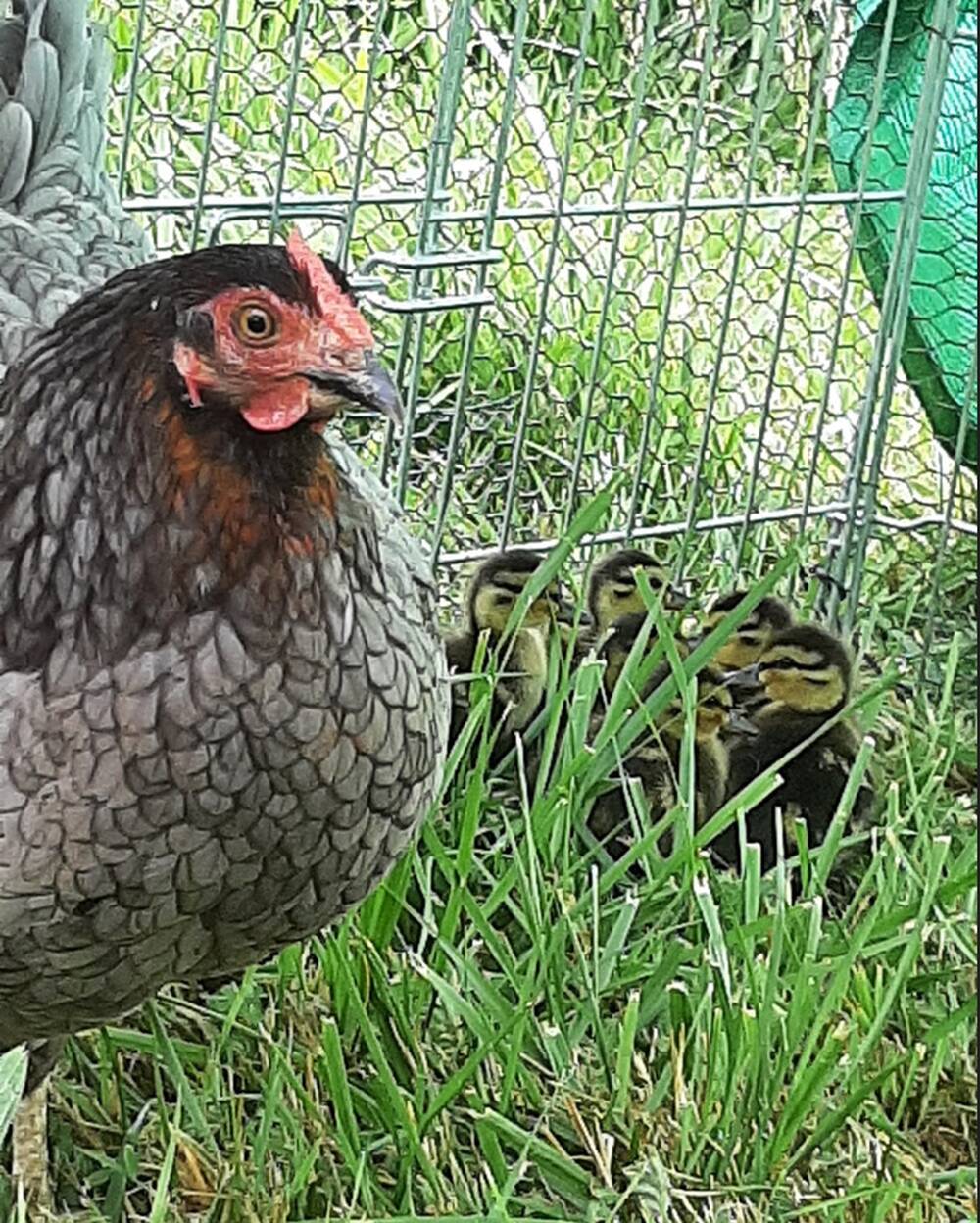 Mit über 75 geretteten Kitzen möchte ich von zwei besonders erfreulichen Erlebnissen berichten. Ein Einsatz führte uns zu einem größeren Grünroggenfeld wo wir ein Entengelege sichern konnten. Leider ist bei unserer Kontrolle nach den Mäharbeiten die Ente nicht mehr zum Gelege zurückgekehrt. Wir haben daraufhin die Eier einer Ammenhenne untergelegt die zuverlässig die Enten ausgebrütet hat. Zum Schluss konnten aus den acht Eiern sieben Entenküken schlüpfen, die seitdem fürsorglich von der Henne betreut und großgezogen werden.