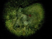 Ich rief den Jagdpächter an und berichtete, dass ich ein starkes Schwein, wahrscheinlich einen kapitalen Keiler beschossen hatte. Und, liegt? Ja, denke schon. Ich sehe ihn aber nicht. Gut, ich komme mit dem Hund, sagte er. Es folgten bange Minuten des Wartens. Hoffentlich liegt er wirklich, dachte ich. Hoffentlich ist er nicht zu weit gegangen, womöglich in den Sumpf und hoffentlich gibt es keinen Ärger, weil ich als Gast und Jungjäger einen starken Keiler geschossen habe. Dachte ich.