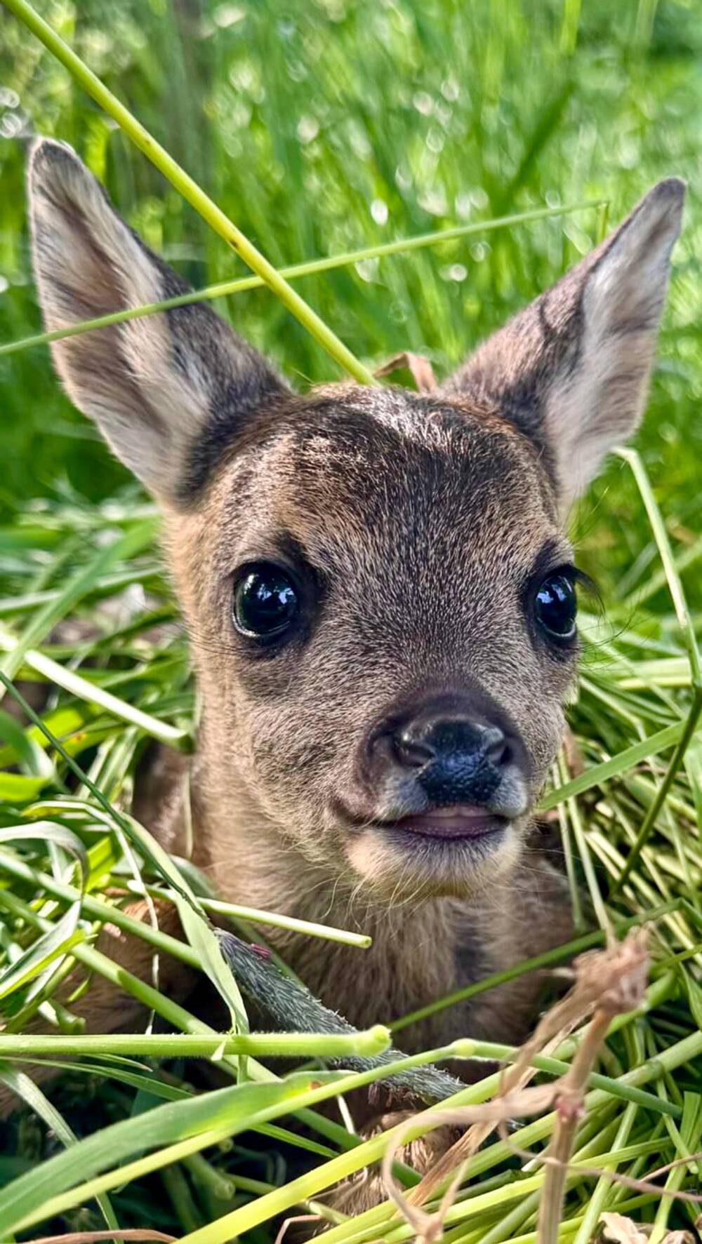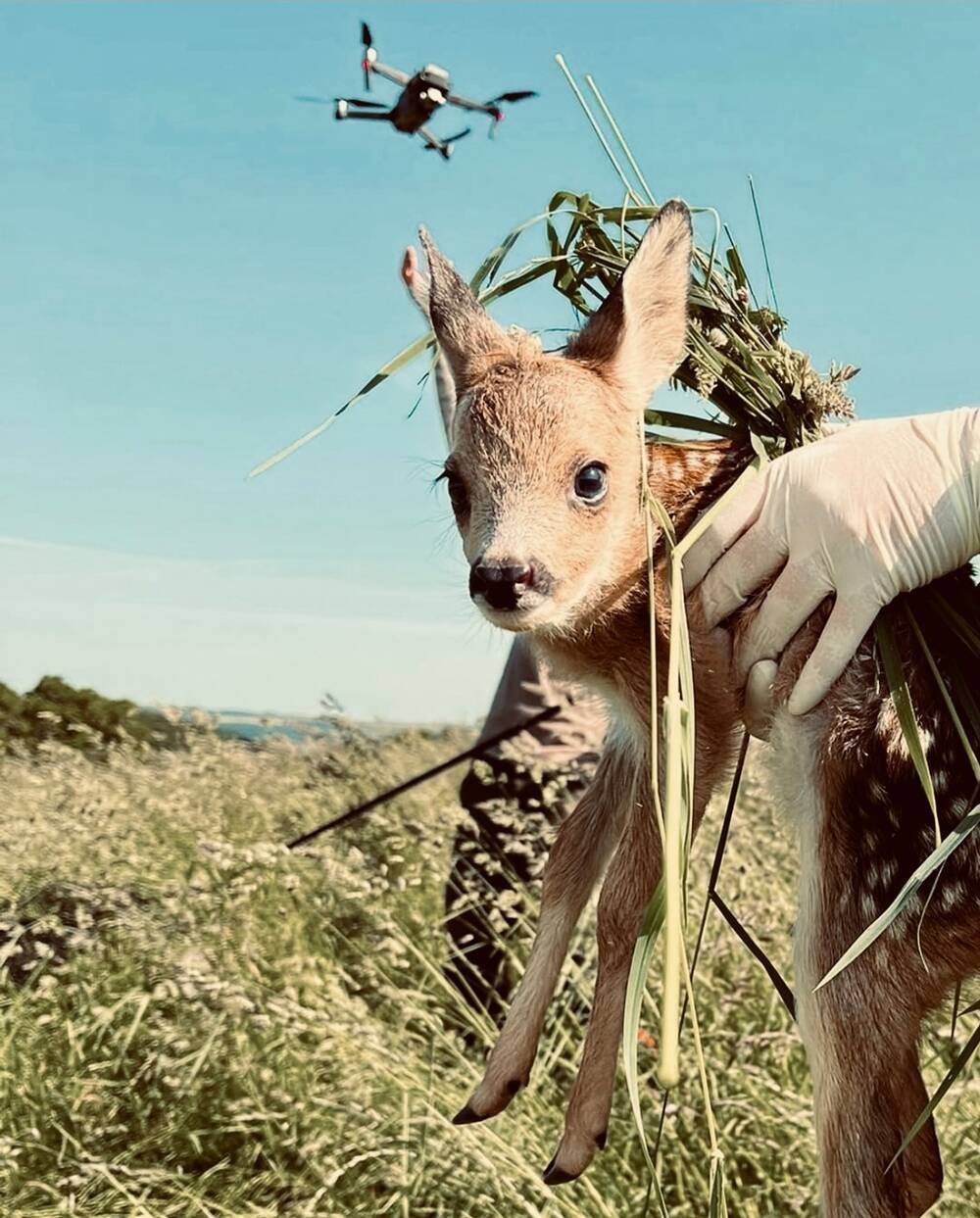 Schöner kann Rehkitz-Rettung nicht aussehen – und trotzdem bleibt der ernste Hintergrund: Jährlich sterben tausende Kitze durch Mähwerke.