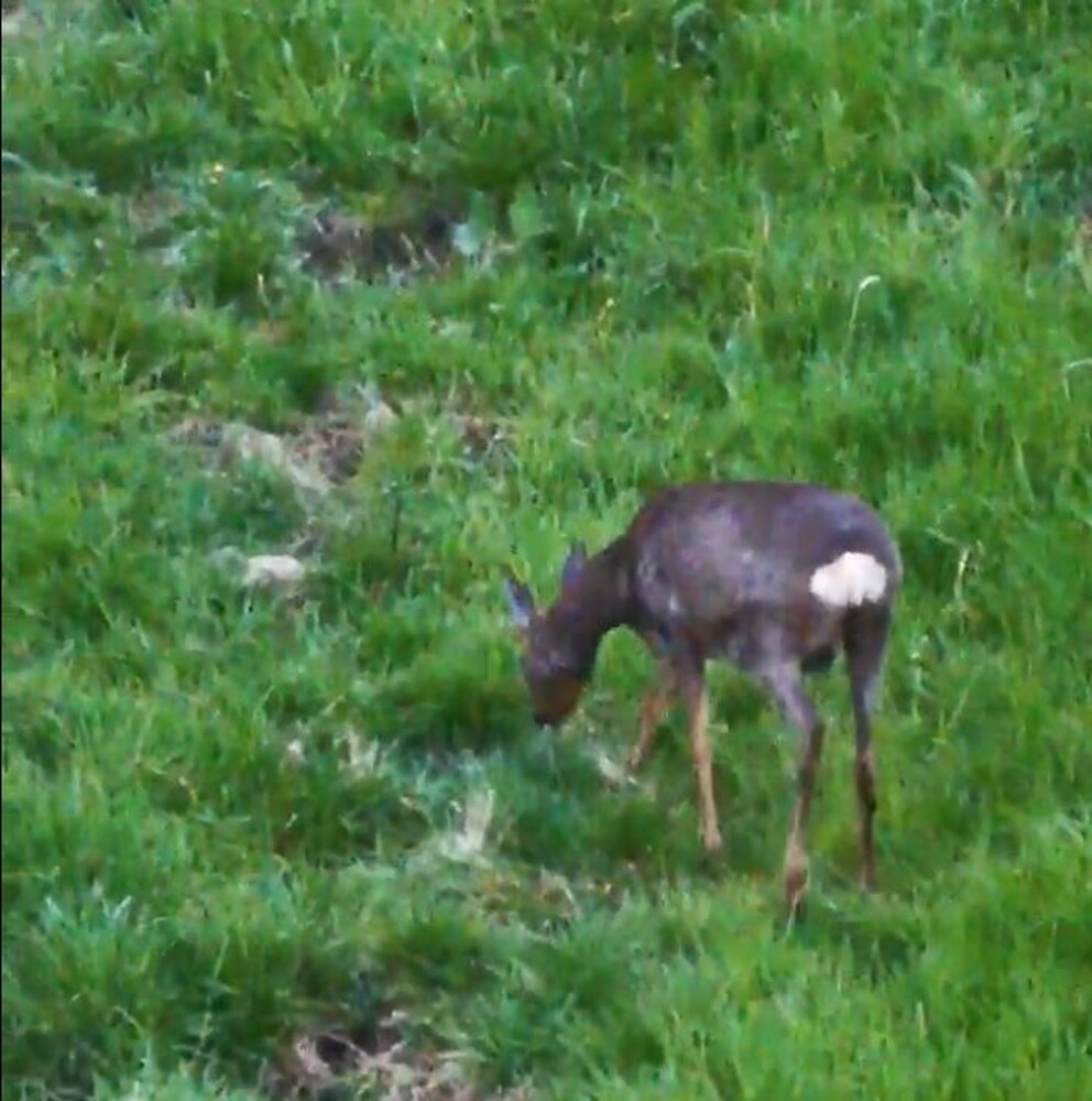 Nach dem Knistern kam die Ruhe. Schließlich trat eine Kreatur in 100m Entfernung auf die Fläche. Es war eine Rikke. Hochtragend, das sah man auch von weitem. Also Finger lang und mit dem Fernglas beobachten.