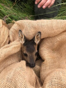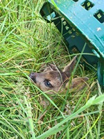An diesem Morgen haben wir auf weiteren 3 Flächen mit insgesamt 15 ha sechs Rehkitze, einige Hasen und Fasane gefunden. Vier Kitze zeigten noch keinen Fluchtreflex und wurden unter Körben gesichert. Zwei Kitze konnten wir aus den Flächen vergrämen.